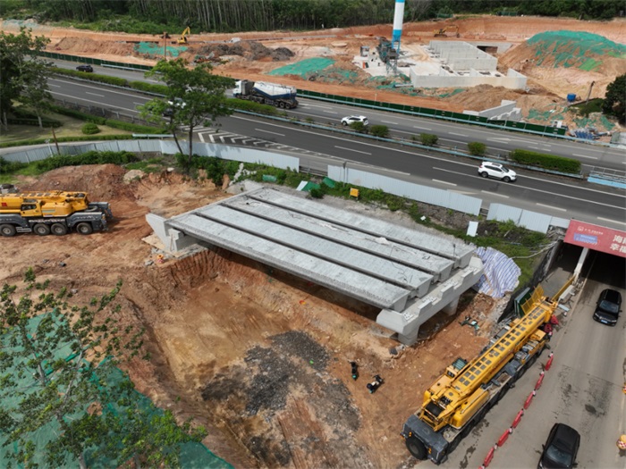 6月25日,在G98环岛高速公路仙沟互通立交改造工程(以下简称“仙沟互通”)施工现场,牵引车将预制梁片缓缓运至施工现场,在经过1个小时的提梁、位移、落梁等工序后,长约25米,重约80吨的首片预制梁稳稳落在集散1号桥0号台与1号桥墩盖梁上,标志着仙沟互通项目首片预制梁成功架设,为整个项目的顺利推进奠定了坚实基础。 [更多]