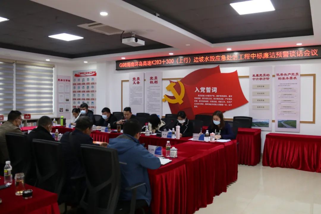 为确保G98环岛高速K283+300(上行)边坡水毁应急处治工程廉洁、高效、有序推进,2月25日下午,海南交控养护公司组织召开工程中标廉洁预警谈话会议。 [更多]