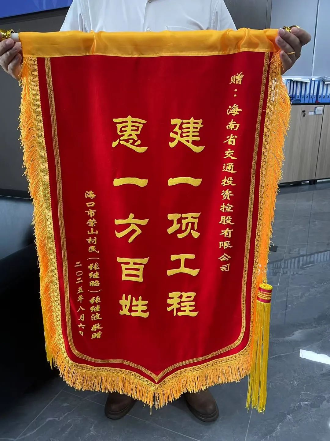 “谢谢你们,给我们开路!”8月6日,荣山村村民代表带着全体村民的深情厚谊,将一面鲜红的锦旗与饱含真挚谢意的感谢信亲手交到海南交投现场管理人员手中。锦旗上“建一项工程,惠一方百姓”的金色大字,与村民质朴的笑脸交相辉映,无声诉说着一条崭新村道为这个村庄带来的温暖改变。 [更多]