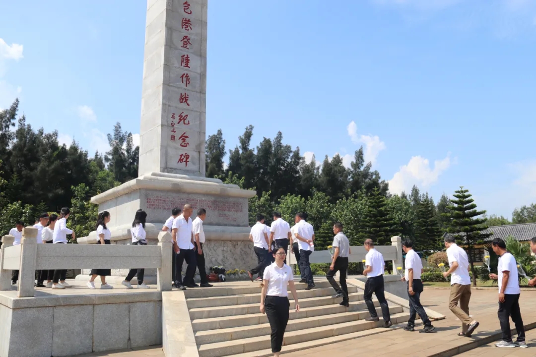 大家向为了海南岛和平解放,在渡海登陆战役中牺牲的革命烈士默哀并敬献花束。烈士陵园内,纪念碑巍峨而立,大家绕纪念碑环行一周,依次排队敬献菊花,深切缅怀为国家、为民族壮烈牺牲的革命先辈。支部书记刘庆阳带领大家三鞠躬,深切表达对烈士的缅怀之情。