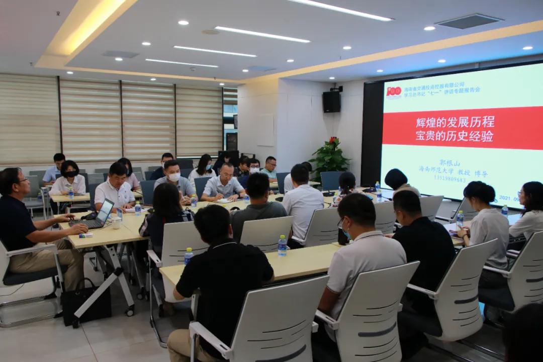9月17日,海南交投环岛旅游公路投资开发有限公司党支部、海南省交控服务区投资有限公司党支部、海南交控投资有限公司党支部联合开展“学党史,知党史,跟党走”红色大讲堂主题党日活动,邀请海南省委宣讲团成员、海南师范大学马克思主义学院郭根山教授为全体党员讲授专题党课。
