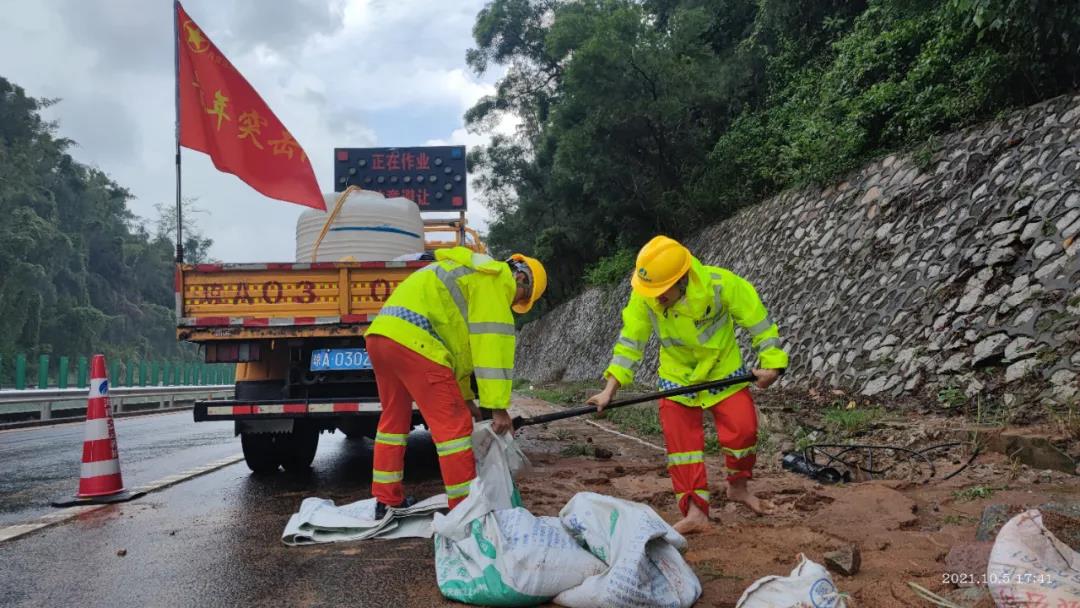 海南交控养护公司“青年突击队”正在进行应急抢险作业。