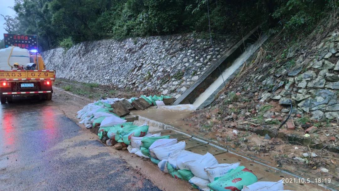 10月5日中午13时,海南交控养护公司万宁管理站员工进行道路巡查时,发现受强降雨影响,G98东线高速左幅三亚往海口方向k160+950处边坡被暴雨冲刷,水流带出大量砂土进入边沟造成淤积拥堵,导致积水涌入高速公路主线行车道,对车辆通行安全造成较大影响。
