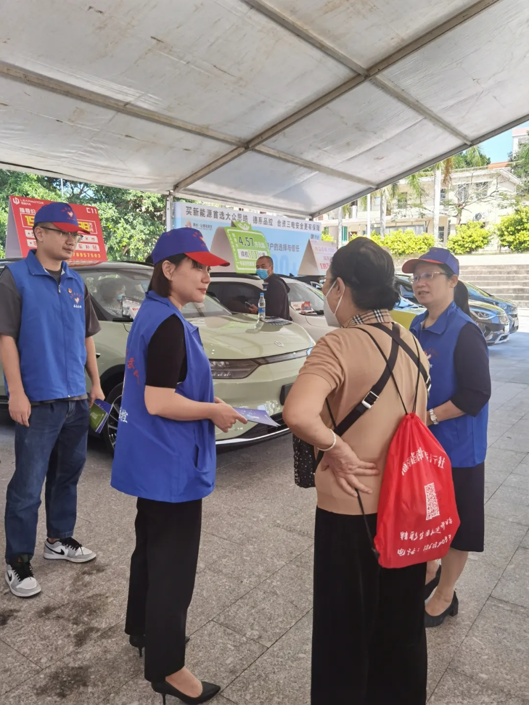 志愿者与群众交流购车心得