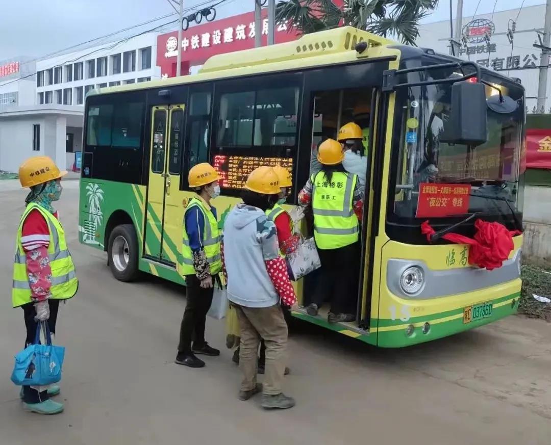 从金牌港装配式建筑产业园区到县城购物消费更方便了!2021年12月31日下午6点,临高县公共交通公司第62路公交车进金牌港产业园区开通仪式在中铁建设集团有限公司举行。