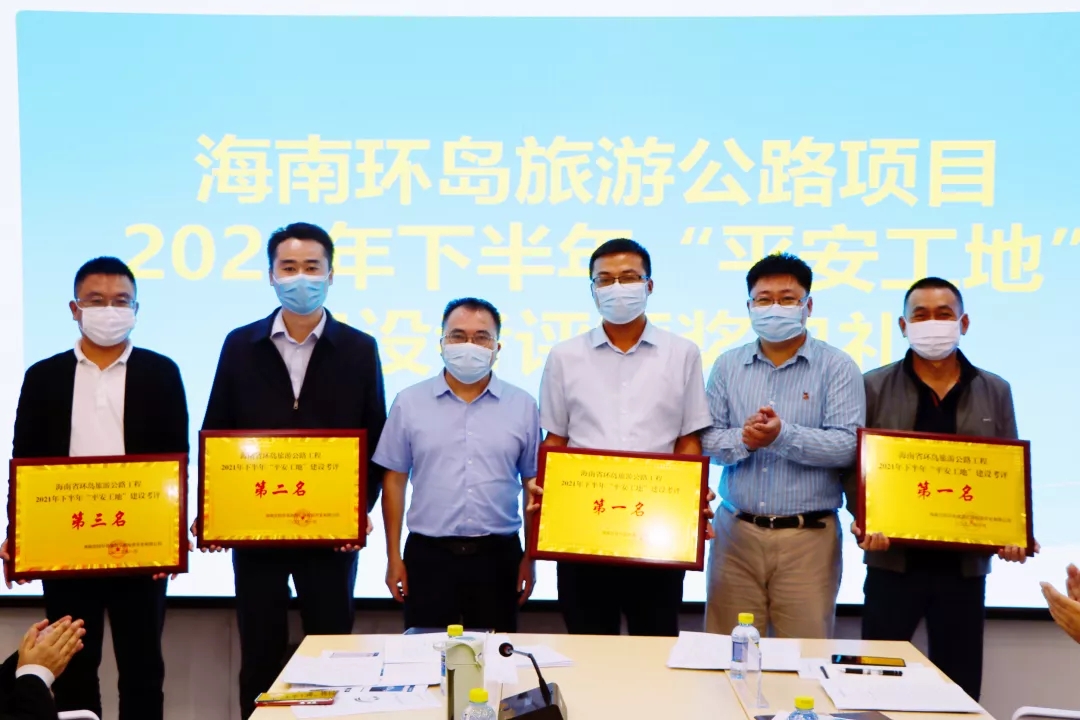 会议传达学习了《中共中央办公厅 国务院办公厅关于做好2022年元旦春节期间有关工作的通知》、《海南省交通运输厅研究部署岁末年初安全防范工作》、《海南省交通运输厅公路项目推进会暨安全生产及疫情防控部署电视电话会》等上级文件或会议精神和工作要求。会议通报了环岛旅游公路项目2021年下半年 “平安工地”建设考评情况,并对“平安工地”考评成绩前三名的施工单位(中交二公局第六工区项目部、中资集团第五工区项目部和中铁北京局第一工区项目部)和考评成绩第一名的监理单位(海交咨询第二驻地办)进行全线通报表扬,并颁发奖牌。会议总结了2021年安全生产工作并部署2022年安全生产工作,督促参建单位进一步加强做好春节期间安全生产及疫情防控工作;会议还组织各参建单位签订2022年度安全生产目标责任书。