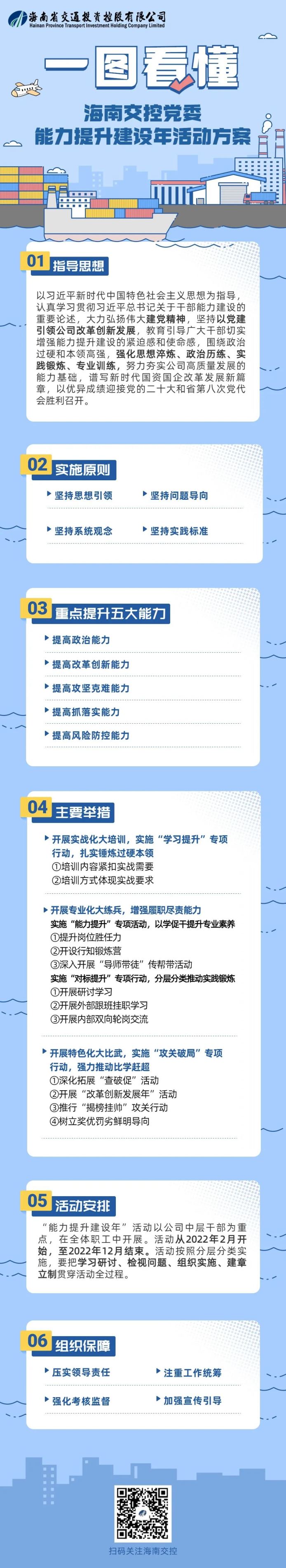 近日,为贯彻落实省委省政府在全省开展“能力提升建设年”活动部署要求,加快推进公司改革创新发展,海南交控党委印发《关于开展“能力提升建设年”活动的实施方案》(以下简称《方案》),为全面开展能力提升建设年活动树立了风向标,列出了活动的“任务书”和“路线图”。