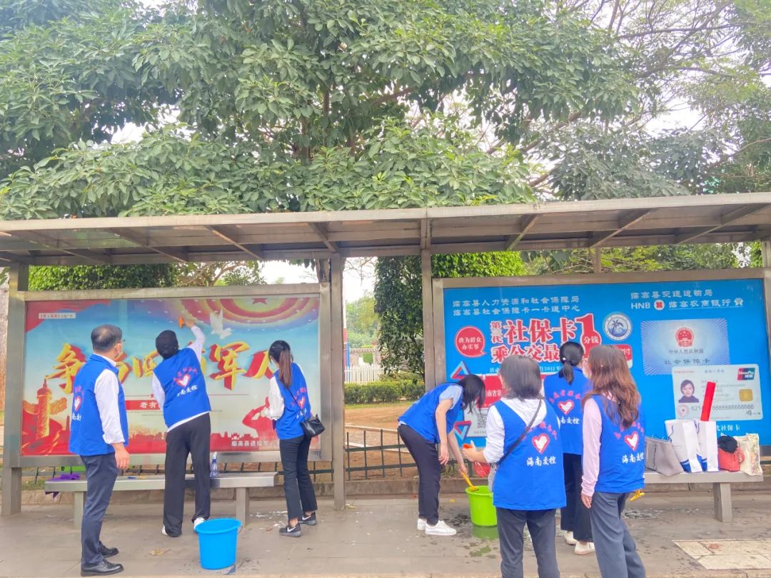 随后,陈泰锋带领大家开展“擦亮城市文明窗口”学雷锋志愿服务活动。现场志愿者们分工明确,配合默契,对公交站牌和候车亭进行清洁维护,有人拿抹布擦拭玻璃和金属边框尘垢,有人拿铲子耐心地清除站台小广告,有人弯腰擦洗候车区的长条凳,充分展现了海南交控党员、团员的良好形象。