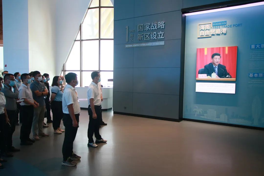在海口江东新区展示中心讲解员的引导和解说下,全体人员依次参观了“国家战略新区设立”“高起点规划高标准建设”“绿水青山就是金山银山”“更高层次改革开放新格局”等展区,并通过感应移屏技术和3D智慧沙盘,全方位、多角度地了解海口江东新区目前建设情况以及未来规划。