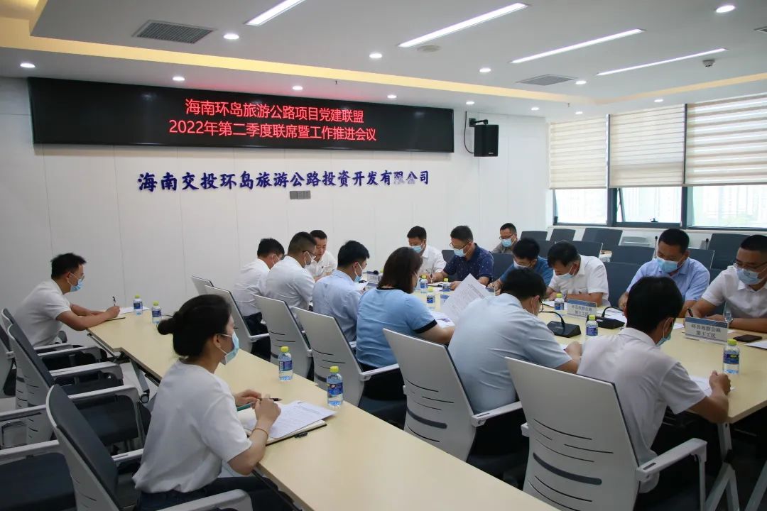 4月27日上午,海南环岛旅游公路项目党建联盟召开2022年第二季度联席暨工作推进会议,环岛旅游公路公司党支部书记、总经理吴卓科主持会议,公司党支部班子成员及党建联盟各工区党支部书记、办公室主任、党务负责人参加会议。