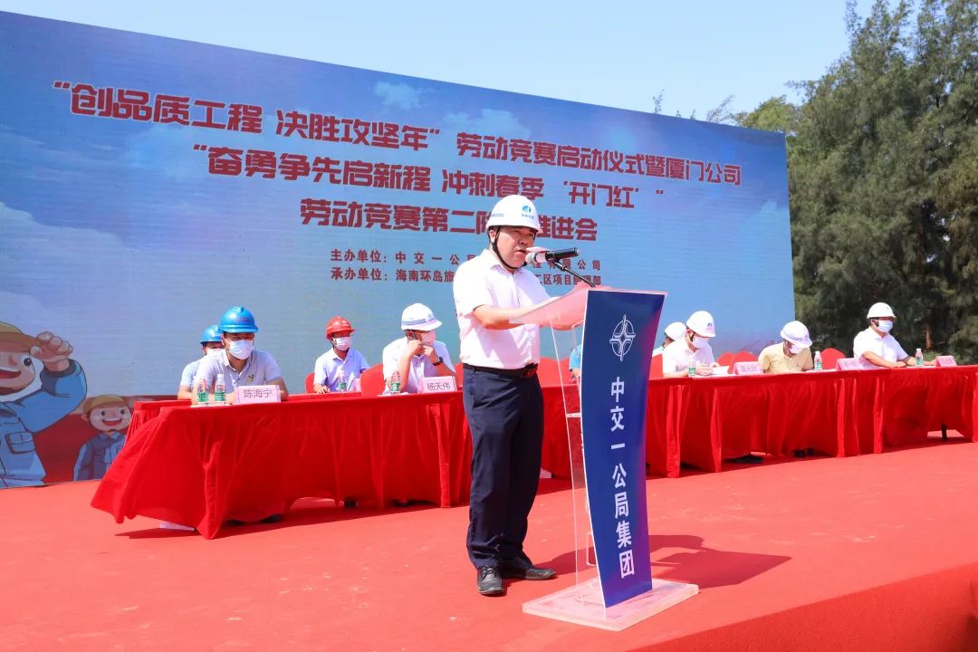 2022年4月28日上午,环岛旅游公路项目在二工区举办“创品质工程、决胜攻坚年”劳动竞赛启动仪式。