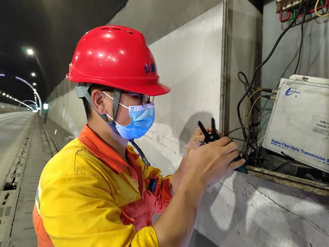 隧道机电管理组组长由公司引进的青年机电专业人才陈威担任,具备机电工程一级建造师职称,持低压、高压电工证,曾在湛江港(集团)股份有限公司任机电设备主管职务。管理组其他人员从各管理站抽调,全部具备机电相关证书。目前,隧道机电管理组人员全体下沉一线,常驻崖城、三亚管理站开展日常工作,对隧道供配电设施、照明设施、通风设施、消防设施、监控与通信设施进行检查维护。年轻的组员们,白天进行供配电设施的检修,夜间利用车流量少的特点错峰维修隧道照明、消防设施。长长的隧道内,不论夜有多深都能见到那抹橙红色的身影。他们为了改善隧道通行环境,从日巡查做起,从细微处着手,致广大而尽精微,使自身在管养一线淬炼成金,逐步成长为工匠型、尖兵型的机电管理人才。