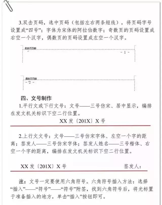 一般用4号半角宋体阿拉伯数字,编排在公文版心下边缘之下,数字左右各放一条一字线;一字线上距版心下边缘7 mm。单页码居右空一字,双页码居左空一字。公文的版记页前有空白页的,空白页和版记页均不编排页码。公文的附件与正文一起装订时,页码应当连续编排。