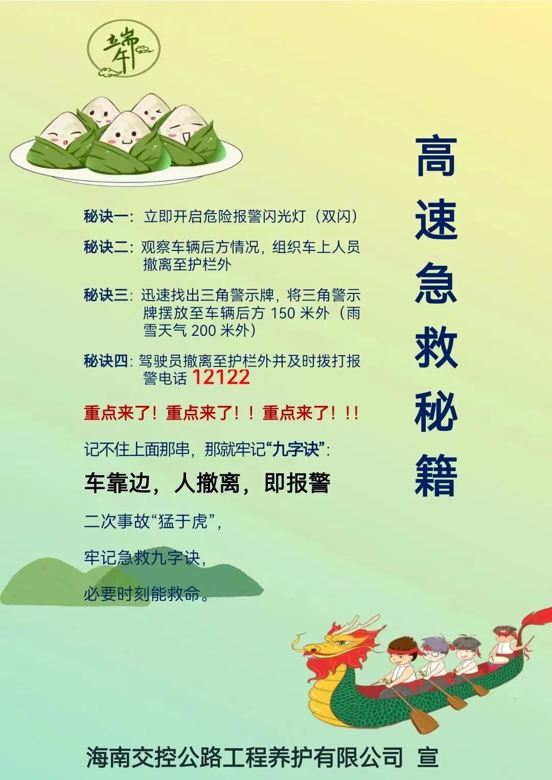 “粽”在志愿,服务正当时。2022年6月1日,养护公司党支部以“车轮上党小组”为载体,以高速公路服务区为阵地”开展文明出行志愿者服务活动,通过设立便民服务点,提供休息茶水、便民服务用品、送“爱”草香包,在提供服务之余,融入高速元素,科普防疫知识、宣传高速公路知识、安全行车知识,倡导文明交通、绿色交通理念。为进一步提升高速公路通行服务质量,营造“畅安舒美”的良好节日氛围。