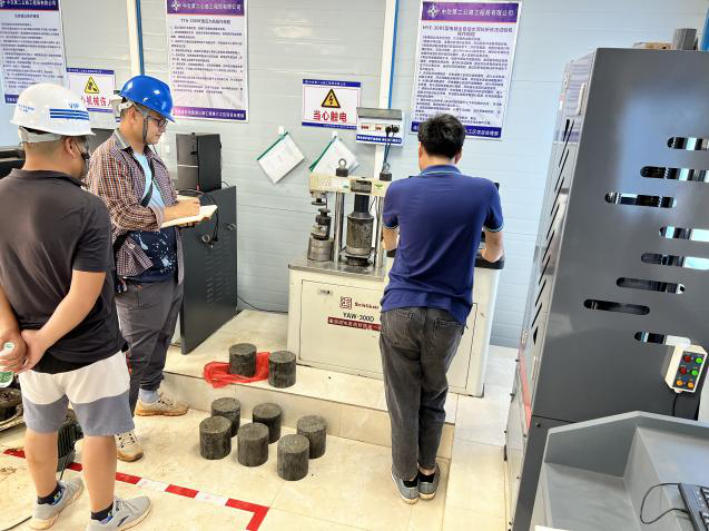 经过7天的覆盖土工布洒水养生,芯样完整,厚度达标,强度(平均值4.7MPa)检测合格。