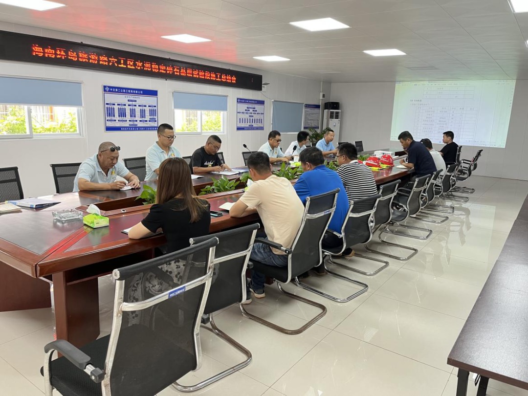 6月7日,环岛旅游公路项目六工区就水稳基层试验段桩号CMK1+880—CMK2+370在澄迈经理部召开技术总结会。三驻地、监理、六工区及施工各部门相关人员参加会议。