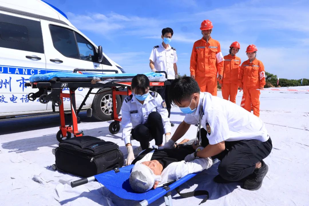 海南省交通运输厅一级巡视员刘闯,中国公路工程咨询集团有限公司党委书记、董事长崔玉萍,完美官方端网站登录入口党委副书记、总经理陈泰锋,海南省交通建设项目主管部门、参建单位和地方政府约150名代表观摩了演练。儋州市人民医院和儋州市消防应急救援支队等单位参与了演练。