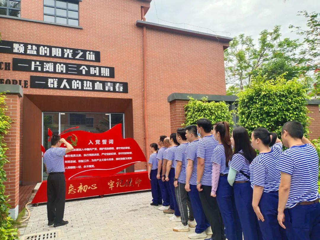 党员们跟随解说员参观海盐文化馆,倾听不同时期的盐场人(盐三代)现场访谈,感悟莺歌海盐场建设者们将30平方公里荒凉沼泽地,建设成为中国南方最大盐田的艰苦历程,及不屈不挠、不畏艰辛,烧干海水变银山的无私奉献精神。随后,大家开启3.5公里的拉练旅程,沿着盐工足迹,体会盐工艰辛。此外,还进行收盐比赛,大家戴上盐工帽,当一回地地道道的收盐工,领会莺歌海盐场工人创业守业、洒下热血青春的大无畏精神。