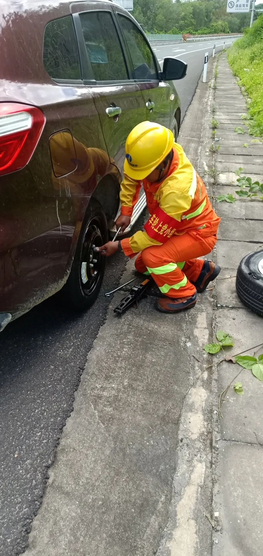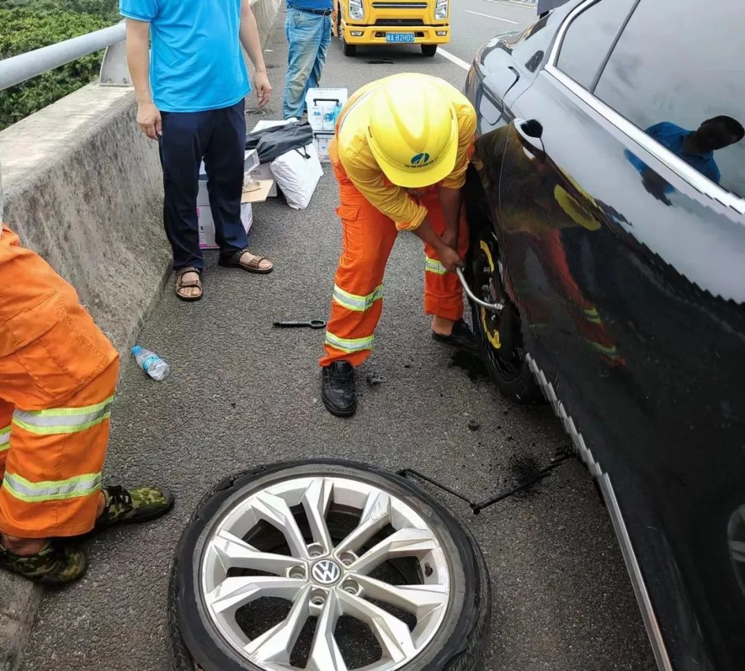 乐东站“车轮上党小组”陈明锐帮助车主更换轮胎