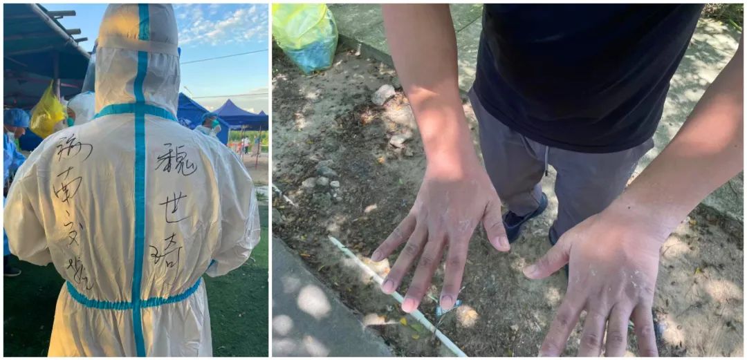 8月16日,在他们采样的83人中,共发现了4名阳性感染者。魏世琦说:“当然,最开始的那会儿,我也有害怕过,害怕自身防护不够被传染、害怕自身不是医护人员不够专业被居民抱怨……但在出任务的时候,这些害怕已经顾不上了,脑子里最多的想法就是:不论再苦再累,我必须坚持,我要让自己的工作能力得到提升,要帮助这里的居民尽快走出疫情的阴影。”每一次脱下“大白”,他手上、脸上的皮都是皱的,伴随着一道一道难以消退的口罩印,戴着几层手套的双手,每次都会全部脱皮,让人不忍直视……