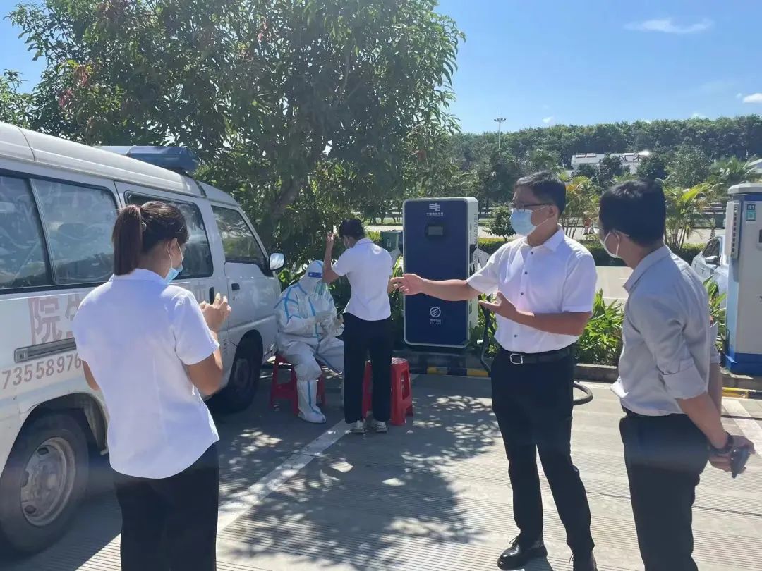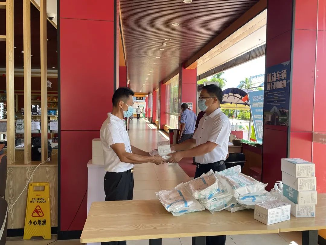 8月15日,海南交控党委副书记、总经理陈泰锋率队赴屯昌、枫木、东太服务区及阳江服务区综合能源补给站项目工地实地调研防疫保障工作。一路上,陈泰锋仔细检查、了解加油站营业场所人员扫码测温、防疫物资储备、营业场所消杀、员工核酸检测、经营保供、值班人员生活物资等情况,给一线员工送上口罩、防护服等防疫应急物资,并对加油站全力保障防疫物资和生活物资车辆能源供应、交通运输顺畅等工作给予充分肯定。