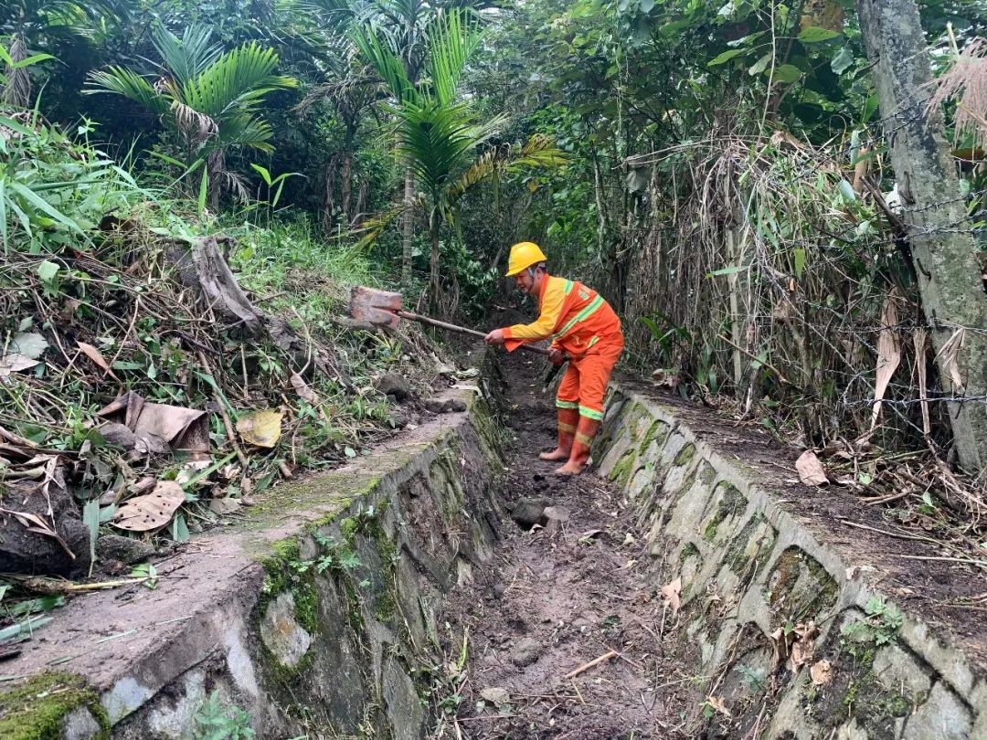 付出,诠释养护担当。每当雨季将至,莫泽东便会加大巡查力度,重点关注事故多发路段,确保公路安全畅通。雨声潺潺,川流不息的公路此时失去了往日的喧闹,而莫泽东却几乎都泡在路上,不是在巡查就是在处理巡查问题,对暴风雨天气出现的部分公路标志标牌损坏、积水问题等这些小型病害,发现即处治,保证边沟、排水沟等排水设施的正常使用。坡心管理站所辖路段水沟数量多、清理难度大,愈是临近中部山区,水沟坡度随着海拔的不断升高,落差亦愈来愈大。站里开始布置水沟清理工作时,莫泽东秉持“路不净,人不回”的工作态度,主动要求到海拔较高的区域进行清淤工作,对亟待处理的水沟进行“地毯式”排查。因海拔高且无人清理,使得高边坡截水沟基本处于开荒状态,沟体内大多堆积着厚重的沙土,加之水沟两旁长有大量乔木,水沟清理工作的难度和挑战可想而知。水边沟空间狭小,机械作业容易造成沟面破损,只能依靠人工清理,莫泽东有时用铁锹铲子清掏,有时直接俯身徒手清理边缝中的杂草和杂物,浑然不顾工作服被雨水所浸湿,他笑言:“雨情未止、保畅不停,清淤防汛便是我的职责所在。”