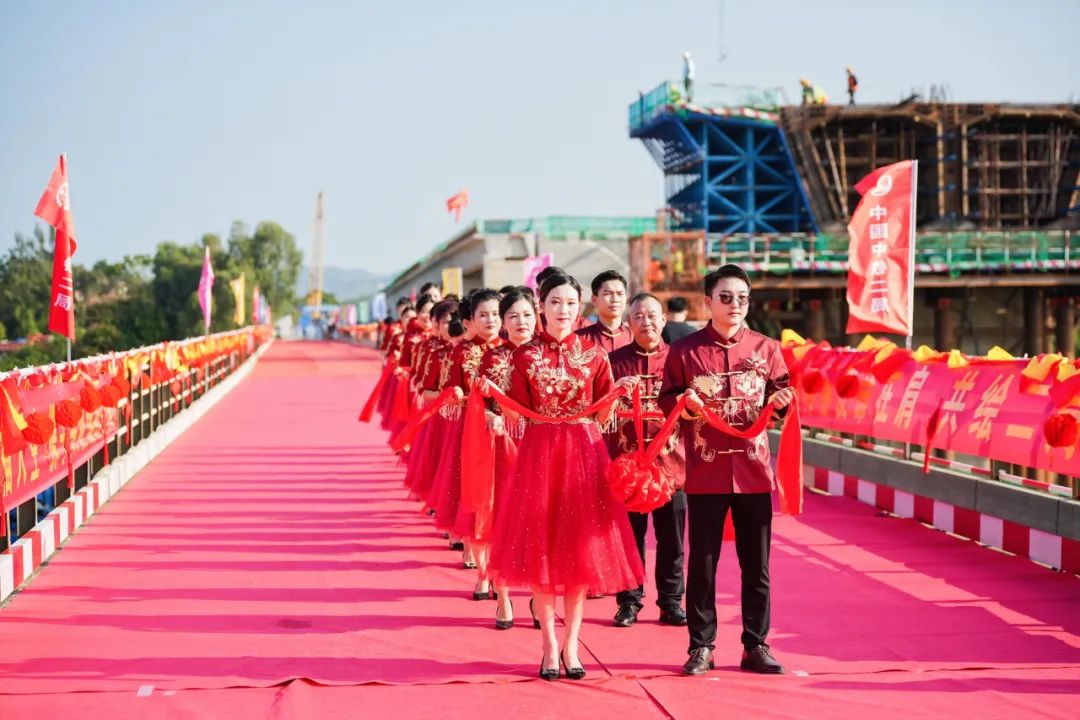 11月11日(农历十月十八日),美好的集体婚礼在项目四工区昌化江大桥施工现场盛大举行。15对来自海南环岛旅游公路项目的新人身穿中式传统婚服,在热闹喜庆的音乐声和在场领导同事们的祝福声中携手走上红地毯,步入婚姻殿堂。