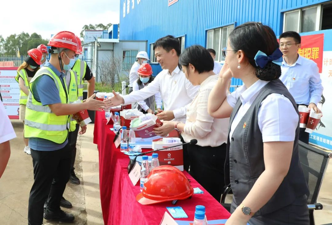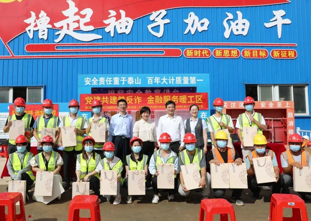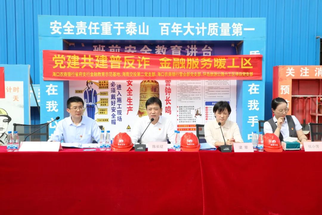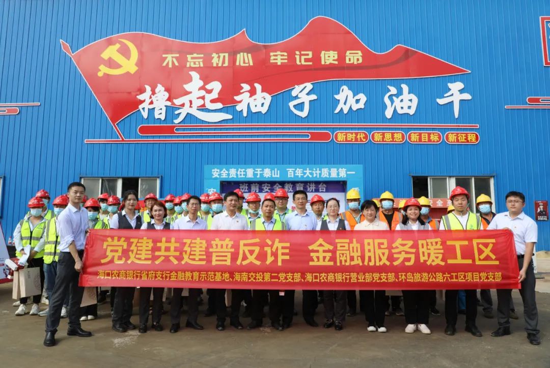 “党建共建普反诈,金融服务暖工区。”11月24日上午,海南交投第二党支部与海口农商银行营业部党支部前往临高兰堂村的文澜江拌和站工地,与环岛旅游公路六工区项目党支部联合开展主题党日志愿服务活动。海南交投党委委员、副总经理陈长征、梁翠出席活动。