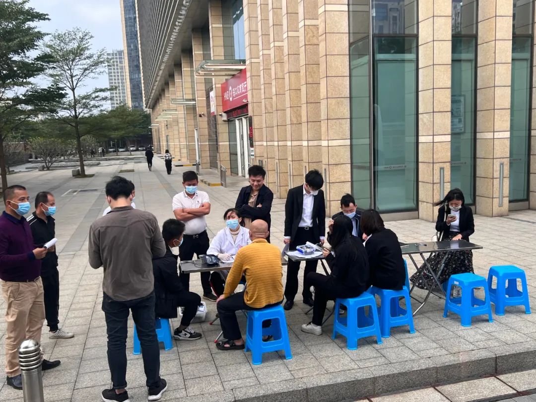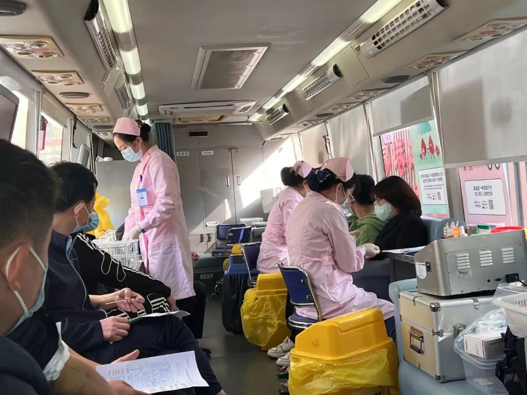 当天上午,虽然遇到了降温天气,但是依旧阻挡不了大家的满腔热情。在工作人员和志愿者的指引下,党员干部职工严格执行疫情防控要求,分批次有序前来,进行扫码、填表、血液初检、血压测量等,每一步都在井然有序地进行中。