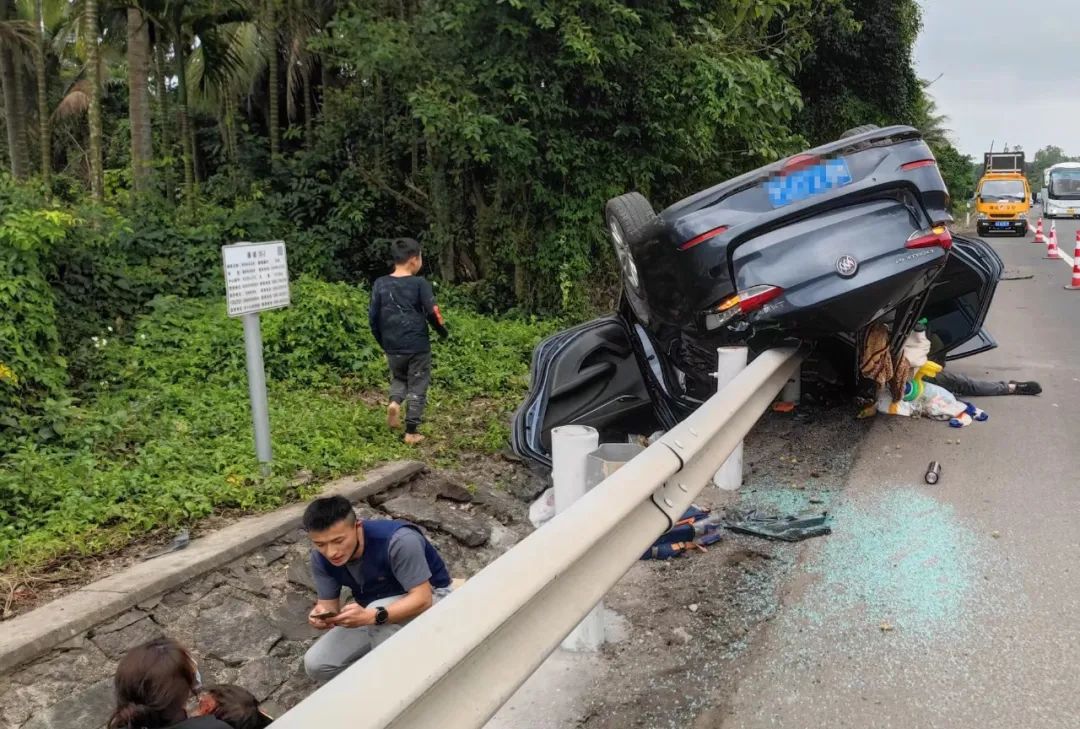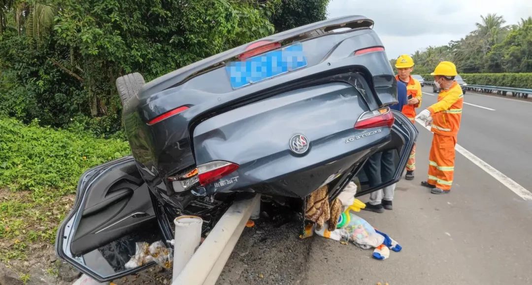 现场已有一名妇女和三名儿童被正在休假的消防员解救出来,但车辆驾驶员头部受伤、身上血迹斑斑,仍被安全带紧紧困在车内无法动弹!琼海站员工迅速从养护车上取出割草刀,协助消防员小心翼翼割断安全带,最终将被困人员救出。琼海站员工一边协助消防员救人,一边与交警、医护、消防人员取得联系,精确汇报事故发生地点,为营救争取了宝贵的时间。救援结束后,他们疏导过往车辆避让,直至事故现场清理工作完成。