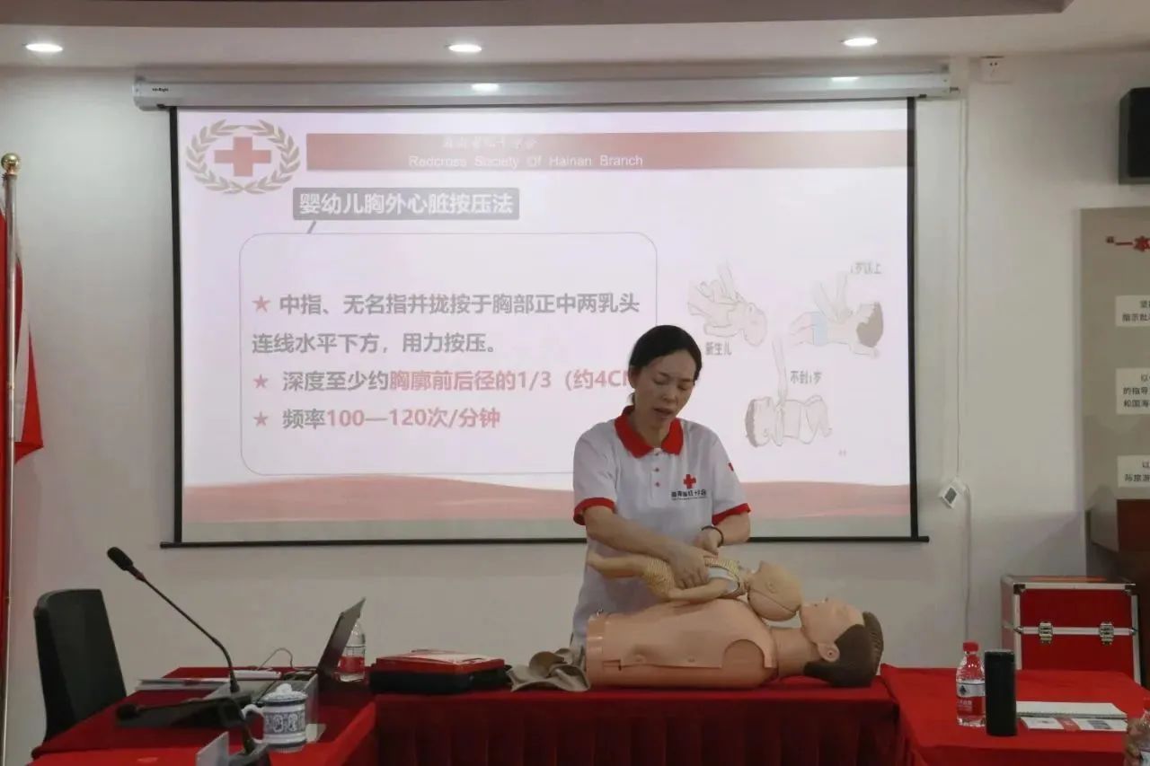 在为期两天的救护员证培训中,曾美青老师通过“理论授课+实践操作”相结合的方式,为参训学员讲授了红十字知识、现场救护概论等课程,重点讲解了徒手心肺复苏(CPR)、自动体外除颤器(AED)的完整操作,并借助模拟人、绷带、三角巾等授课道具和物品,形象生动地向参训学员演示各种施救技巧,普及了常见急症与意外伤害等急救知识。所有参训学员经理论和实操考核合格后,将取得“红十字会救护员证”。
