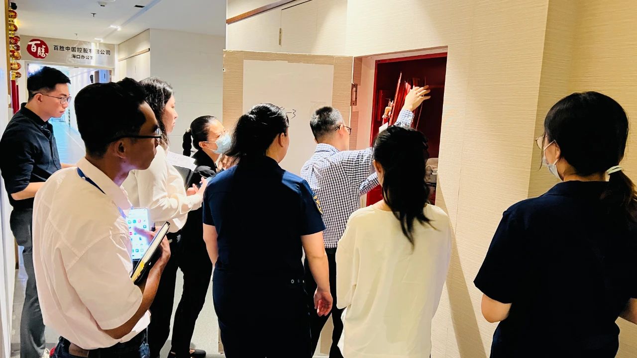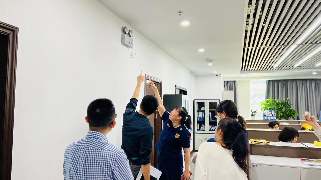 随后,消防大队参谋李旭莹对公司办公场所进行安全排查,并指导相关部门人员就如何防范办公区域的安全隐患、如何进行自我检查、如何合理正确使用公共区域消防栓、消防门等开展应急和逃生。