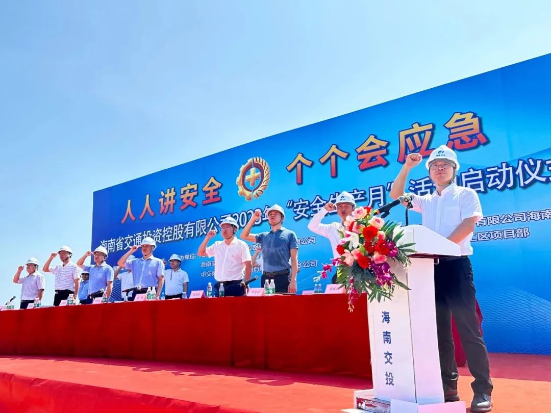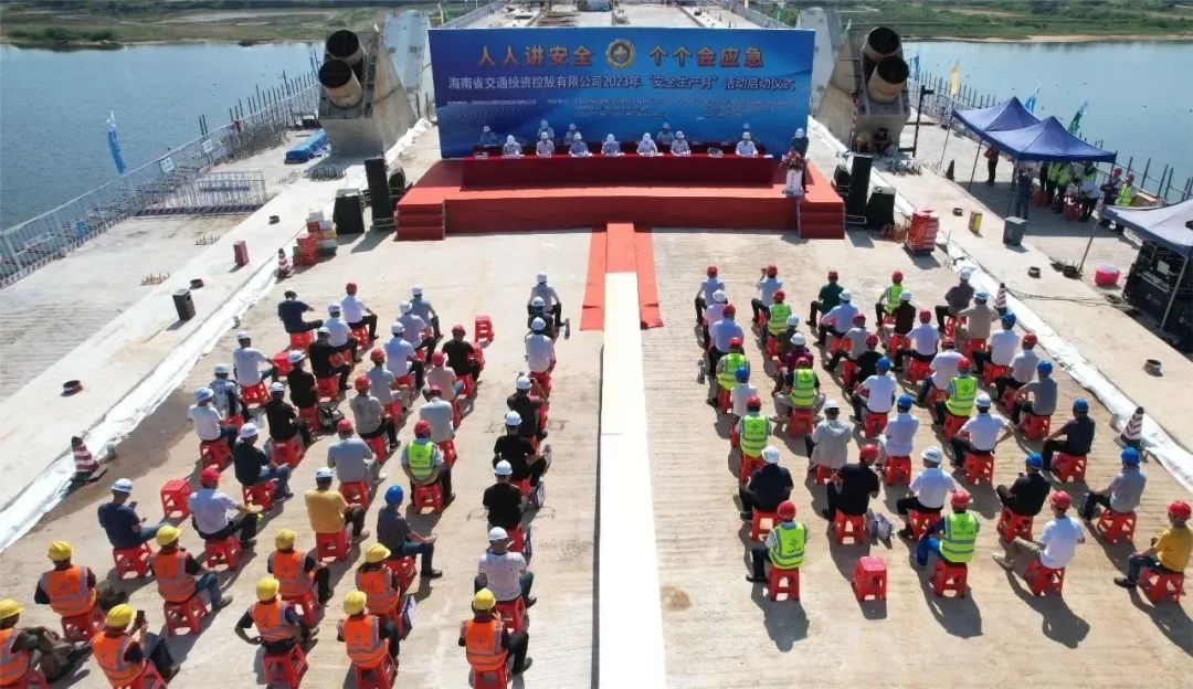 为迎接第22个全国“安全生产月”,以“人人讲安全,个个会应急”为主题,结合开展学习贯彻习近平新时代中国特色社会主义思想主题教育,6月2日,海南交投2023年“安全生产月”活动启动仪式在环岛旅游公路项目第六工区文澜江大桥施工现场顺利举行。