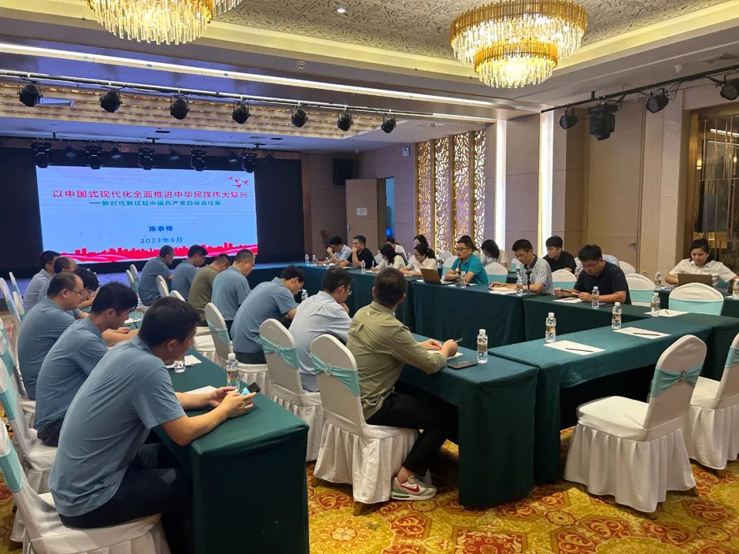 参观结束,全体党员来到项目单位所在琼海办公驻地进行座谈交流,并聆听了陈泰锋讲授主题教育专题党课《以中国式现代化全面推进中华民族伟大复兴》。陈泰锋指出,我们党一直致力于发展中国式现代化,在实现现代化的道路上不断调整创新,使现代化的发展路线更加符合中国国情。全体党员干部要充分了解中国式现代化的内涵和特征,这是区别西方现代化和吸收借鉴一切人类优秀文明成果的现代化,代表着人类文明进步的发展方向,面对中国式现代化的机遇与挑战,我们必须增强忧患意识,坚持底线思维,做到居安思危、未雨绸缪,更要坚定信心、戮力同心、勇毅前行。