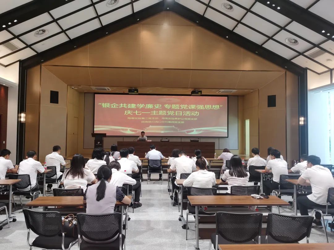 为庆祝中国共产党成立102周年,深化党员干部职工廉洁自律意识,营造崇廉尚廉浓厚氛围,7月13日上午,海南交投第二党支部、养护公司党支部联合招商银行海口分行第四党支部前往海口海瑞文化公园廉政教育示范基地,开展“银企共建学廉史 清正奉公庆七一”主题党日活动。