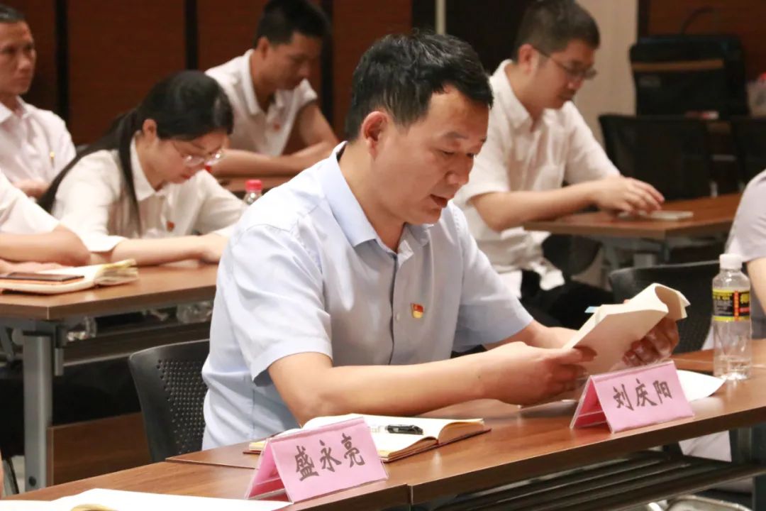 会议最后,开展了读书分享会,养护公司党支部书记刘庆阳领学了《论党的自我革命》——“加强纪律建设,把守纪律讲规矩摆在更加重要的位置”内容,招商银行海口分行第四党支部书记吴柳领读了《习近平新时代中国特色社会主义思想专题摘编》——“新时代中国特色社会主义思想的精神实质和丰富内涵”。党员代表交流了《习近平著作选读》等书籍的读书感想,通过分享工作中的“小故事”,讲清“大道理”,让党员们在分享会中进一步学懂弄通党的创新理论。