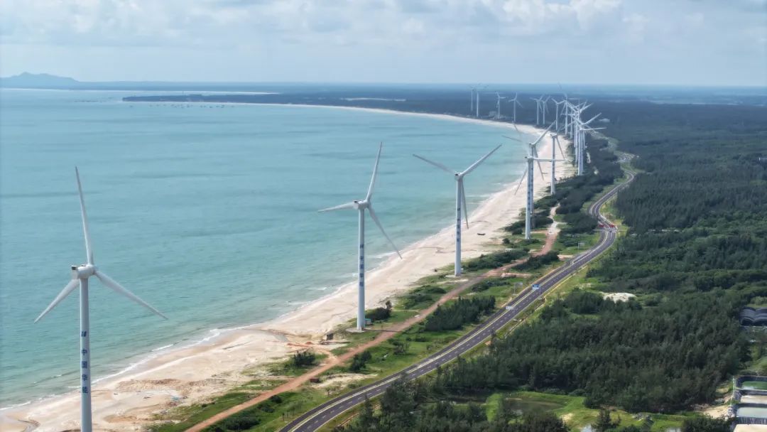 6月30日,海南环岛旅游公路主线路基段建设完成,为2023年12月底主线正式通车奠定坚实基础,图为海南环岛旅游公路文昌风车海岸段。