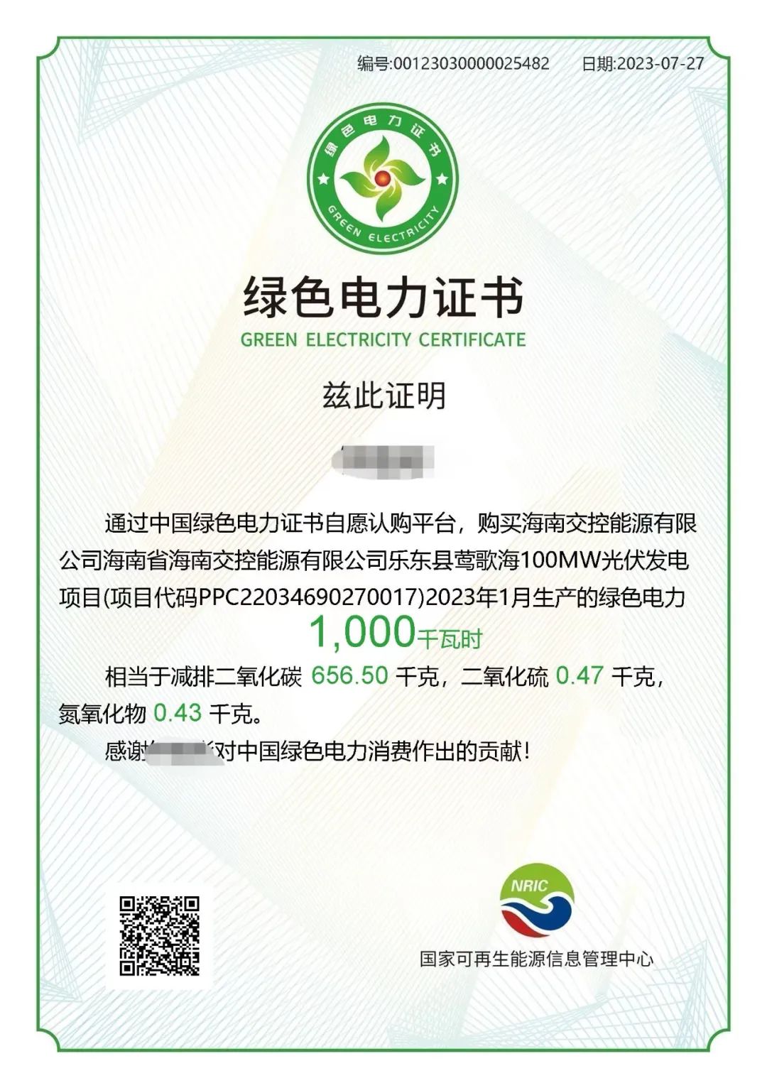 近日,海南交投旗下海南交控能源有限公司申报的首批绿色电力证书,经国家可再生能源信息管理中心审批后发放。该批绿证目前在中国绿色电力证书交易平台已完成多单交易,标志着海南省属企业新能源项目绿证交易正式贯通落地,对公司打造全省能源革命排头兵具有良好的示范效应。