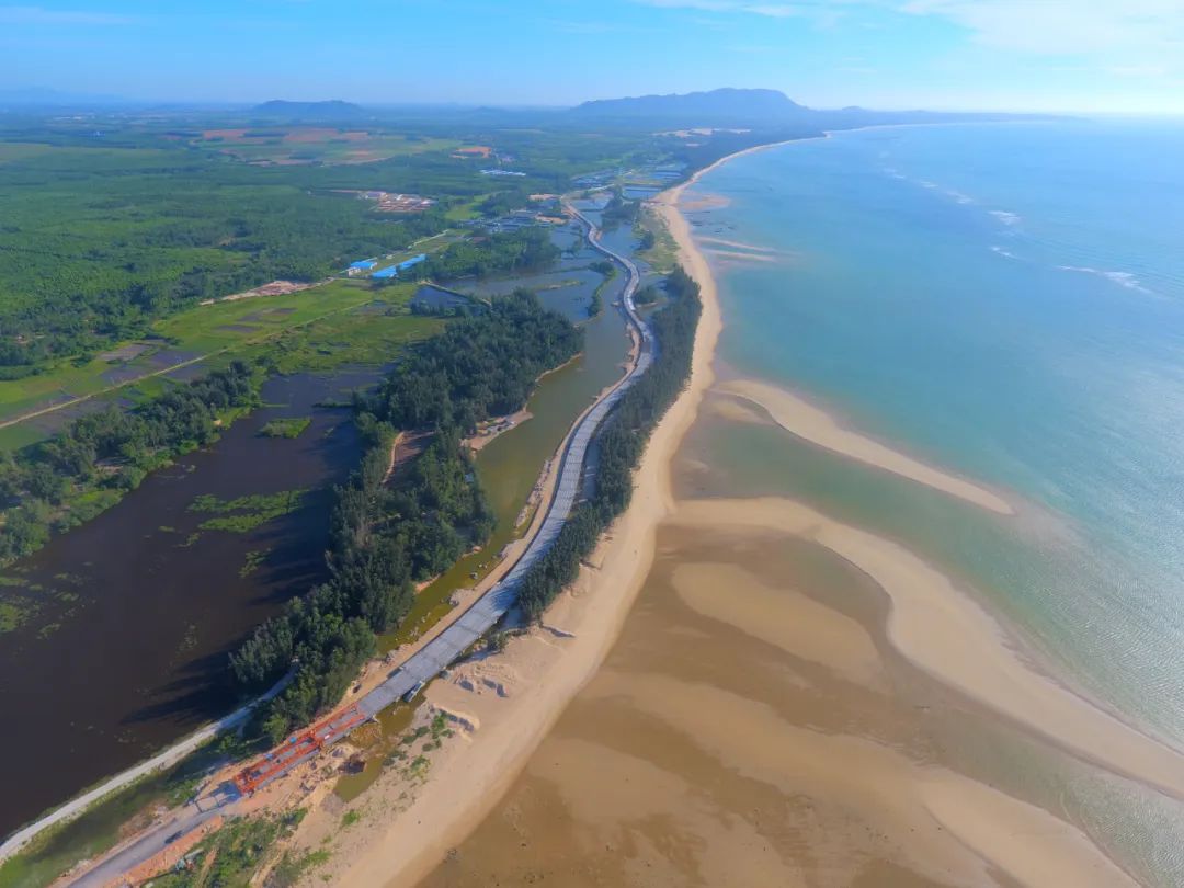 截至目前,该项目全线已累计完成形象产值117.25亿元(含新英湾支线),占预算总投资156.3亿元的75%,全线桥梁建设完成99%,剩余6座特殊结构大桥与机电绿化等施工正稳步推进。