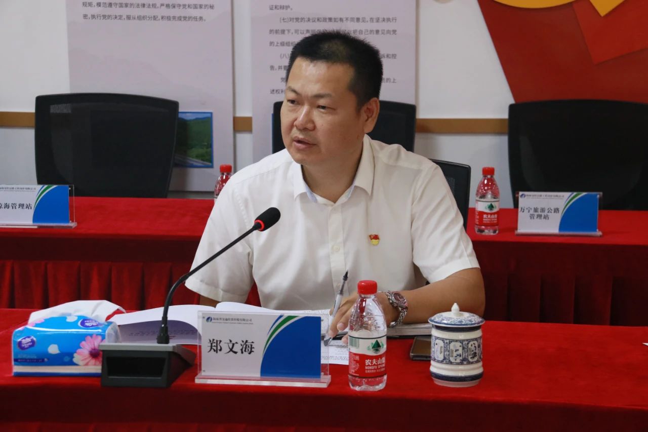 按照主题教育工作安排,海南交投养护公司党支部于8月31日召开了学习贯彻习近平新时代中国特色社会主义思想主题教育专题组织生活会。海南交投党委委员、纪委书记、监察专员郑文海,党委组织部(人力资源部)郭晓骥到会指导,养护公司党支部书记刘庆阳主持会议。