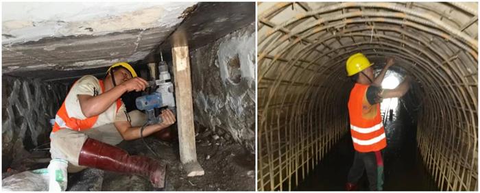 这些涵洞大部采用浆砌片石台身,受长期的干湿交替、温度变化、风蚀水蚀作用,部分涵身勾缝脱落、砌石开裂、台背填料缺失,各个涵洞出现不同程度的裂缝、钢筋锈胀、涵顶下沉等病害。为此,专项工程除了开展耐久性病害处治,还针对涵身砌石开裂(圆管开裂),采用口字型混凝土框架(内衬圆管)进行加固;针对涵顶裂缝类病害,通过粘贴碳纤维布进行补强;针对涵顶下挠类病害,采用粘贴钢板进行补强。通过专业化的改造修复,使涵洞恢复稳定,目前总体修复进度已完成60%,预计在10月底全面完工。