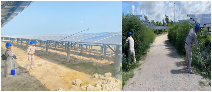 根据政府和公司各级部门工作部署,积极开展隐患排查治理工作。通过对自查、政府抽查、公司专项检查提出的建议和整改项进行细化分析,克服盐场高温天气,及时安排人员开展了光伏区除草、组件清洗及升压站安全目视化标识标牌涂装张贴等工作,确保电站隐患治理零容忍。此外针对建设期遗留缺陷,电站充分利用电网陪停期完成缺陷处理工作,减少设备计划停机,提高了发电效率。发现并消除隐患共计360余条,确保电站经济效益和安全防线同步稳筑。