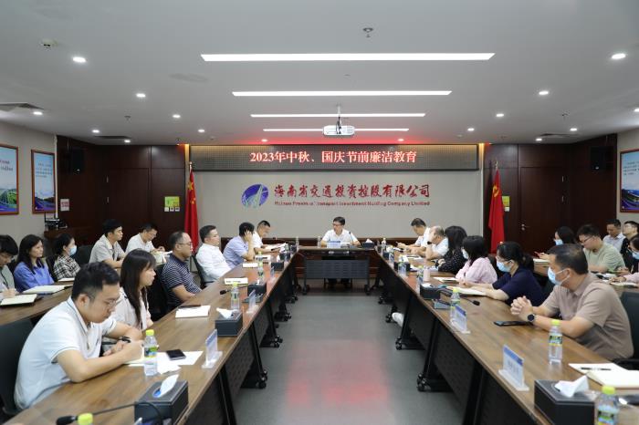 9月26日,海南交投召开2023年中秋国庆节前廉洁教育会,安排部署正风肃纪工作。公司党委委员、副总经理陈长征,党委委员、纪委书记、监察专员郑文海出席会议并讲话。会议由公司纪委副书记陈磊主持。
