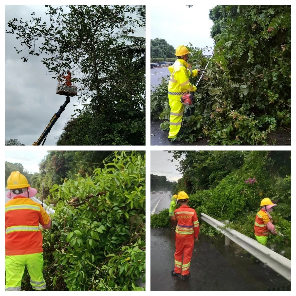 提前砍伐路边断枝,避免隐强风暴雨导致树木倒伏,对出行人员带来不便影响。