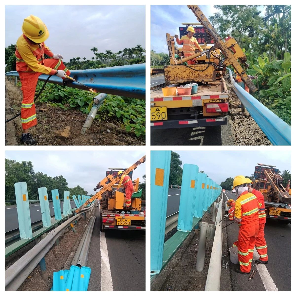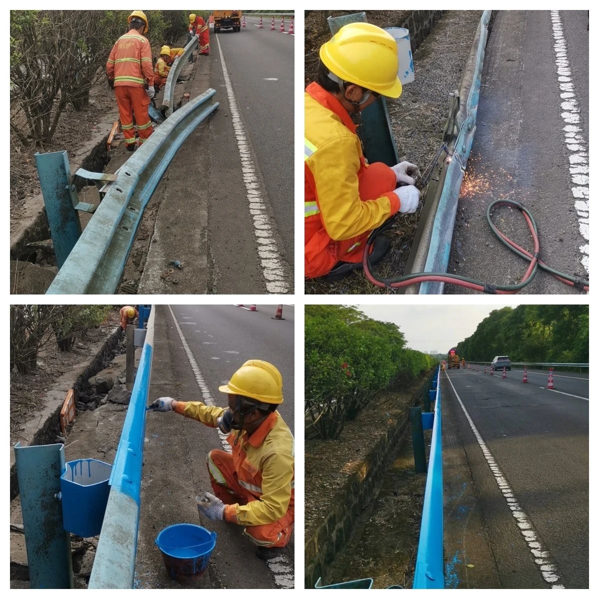及时检查各类交安设施,修复因事故损坏波形护栏、防眩板,助力安全出行。