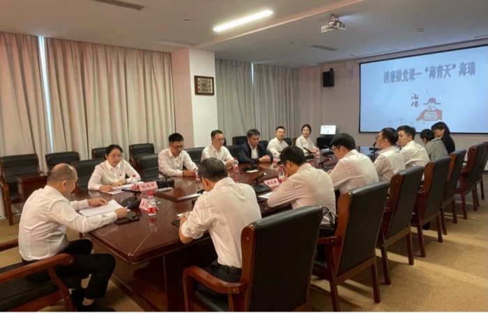 在参观完海瑞文化展馆后,支部书记莫光财主持召开支部党员大会,对推动科技板块清廉建设作出安排部署。纪检委员阮旭华在会上宣贯了《关于推动科技板块清廉建设实施方案》,并给大家上了一堂关于海瑞精神的清廉微党课。
