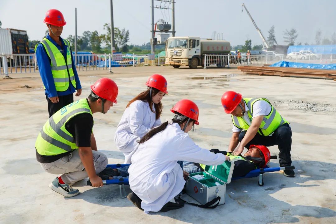 11月28日上午,海南省环岛旅游公路工程在项目第十工区北门江特大桥施工现场举行2023年灭火及逃生应急救援演练。环岛旅游公路公司、儋州市中和镇专职消防救援站、各监理单位及施工单位相关负责人共30余人到场观摩。