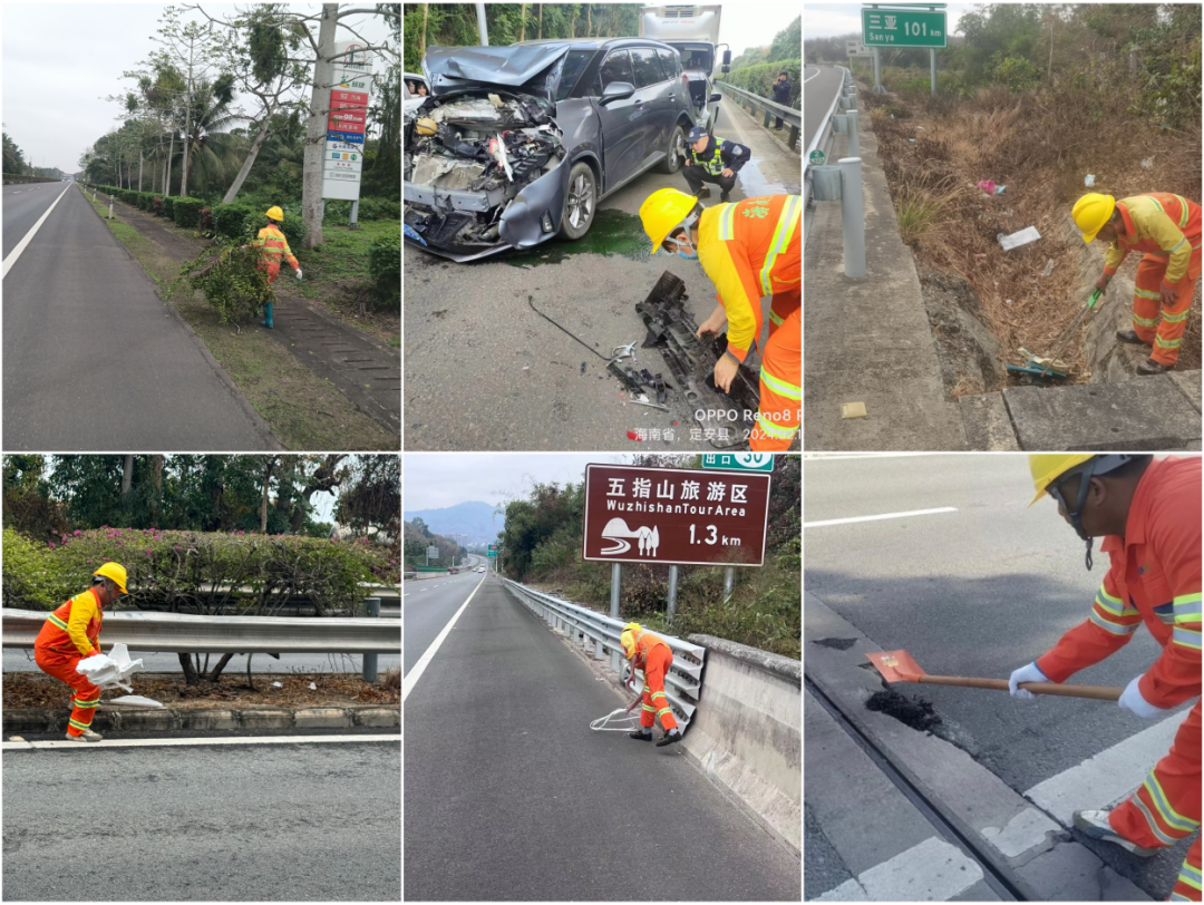 春节假期期间,海南交投养护公司所辖高速公路共出动路上巡查、保洁1337人次,养护车辆416辆次,累计清障4259次,处理突发事件5起,高速公路总体运行平稳、通畅。