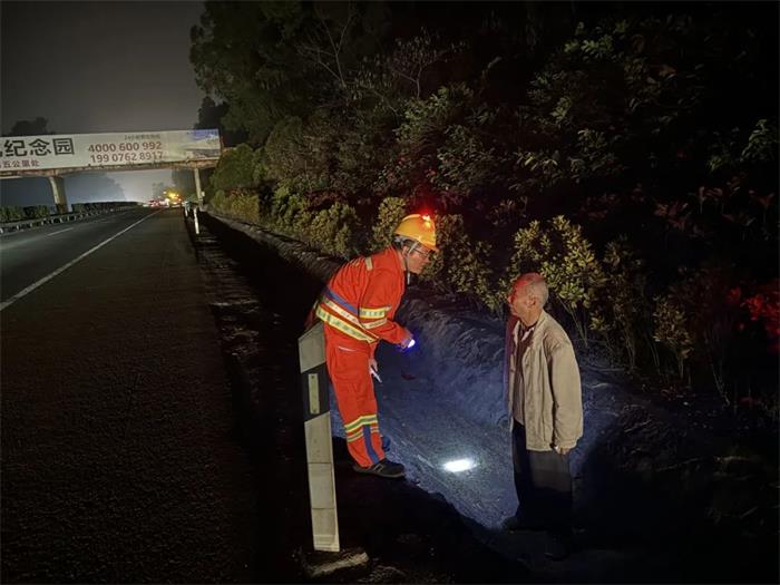 定安站“车轮上党小组”李祖珩、丁兆栋深夜护送误入高速公路迷路老人。