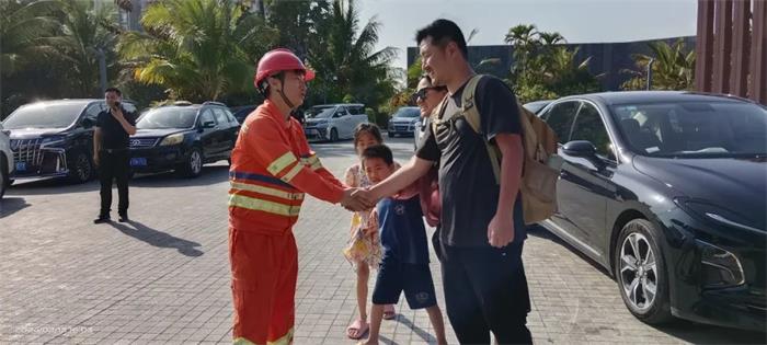陵水站“车轮上党小组”王林青帮助游客返程。